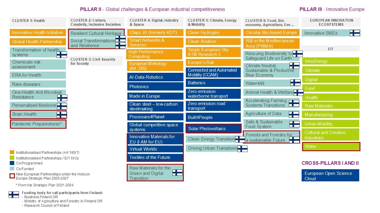 Horisontti Eurooppa -ohjelmasta rahoitetaan eurooppalaisia kumppanuusohjelmia (European Partnerships) yhdessä yksityisen ja/tai julkisen sektorin toimijoiden kanssa. Nämä kumppanuusohjelmat avaavat tutkimus-, kehitys- ja innovaatioprojekteille rahoitushakuja. Riippuen kumppanuuden toteutusmallista haut voivat olla kaikille avoimia tai sitten vain kumppanuusohjemaan sitoutuneiden ja sitä rahoittavien maiden osallistujille.